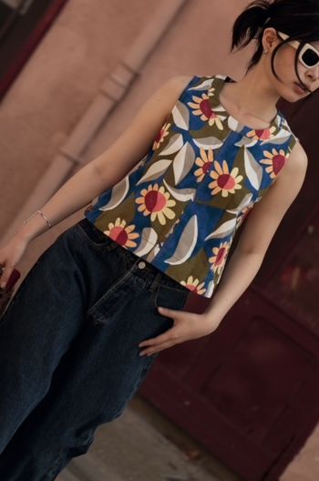 "Le style CASBAH LOVE s'affirme par une identité audacieuse et solaire. Les silhouettes associent coupes fluides et confortables à des imprimés graphiques et ethniques aux couleurs vives et contrastées.